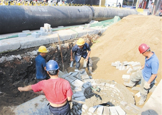 工程部副經(jīng)理鄒艷忠告訴記者,為早日還路于民,提升供水能力,西關(guān)到北京路、北京路到中山路、中山路到民權(quán)路口三個(gè)工作面都在同時(shí)施工,夜晚加班到十一二點(diǎn)更是常事。在怡和摩爾城前的施工現(xiàn)場(chǎng),干燥的路面在車(chē)輛通過(guò)后,揚(yáng)起陣陣灰塵,挖開(kāi)的溝渠內(nèi)全是泥濘,本以為借助機(jī)器進(jìn)行的管道碰接會(huì)相對(duì)容易,但誰(shuí)知道在長(zhǎng)長(zhǎng)的管道里卻藏著一個(gè)人!肮艿琅鼋右蟮氖菄(yán)絲合縫,光靠機(jī)器做不到這么精細(xì),還需要人在管道里查看指引!惫こ滩堪惭b三隊(duì)隊(duì)長(zhǎng)涂云輝說(shuō),從爬進(jìn)管道,再到中間的調(diào)試,一路下來(lái),爬出管道時(shí)經(jīng)常是滿(mǎn)臉通紅了!暗灰用駛冇盟槙,我們的付出也算得到了回報(bào)!蓖吭戚x說(shuō)道。